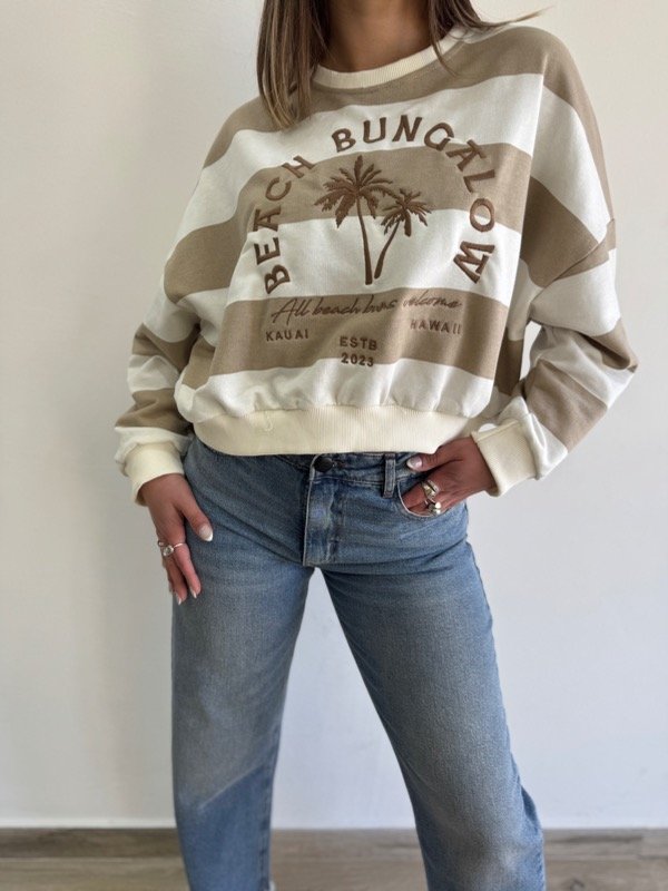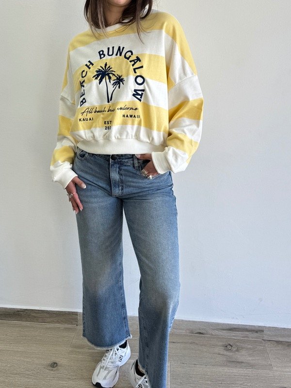 Buzo de algodón rústico con bordado frontal, corte a la cintura. Talle único, abarca de un S al L